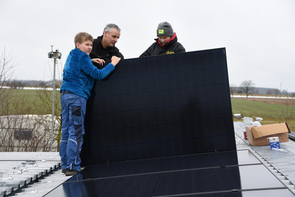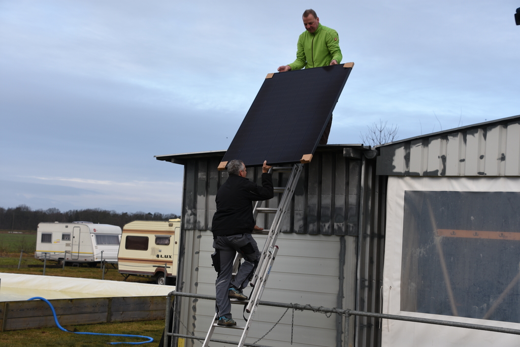 Am 22.01.2022 hat die Jugendgruppe im Rahmen eines Arbeitseinsatzes die zweite Hälfte der PV-Module installiert.